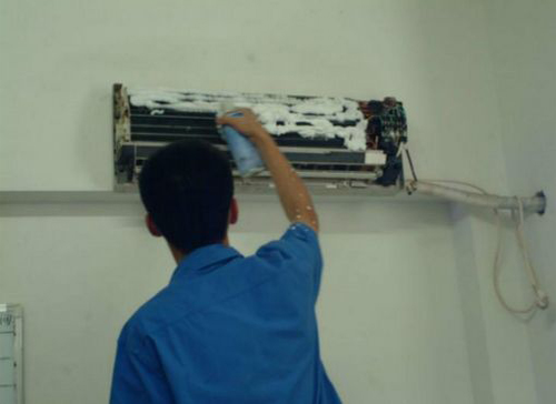 | 五通桥空调维修师傅给五通桥用户上门维修清洗空调。 |